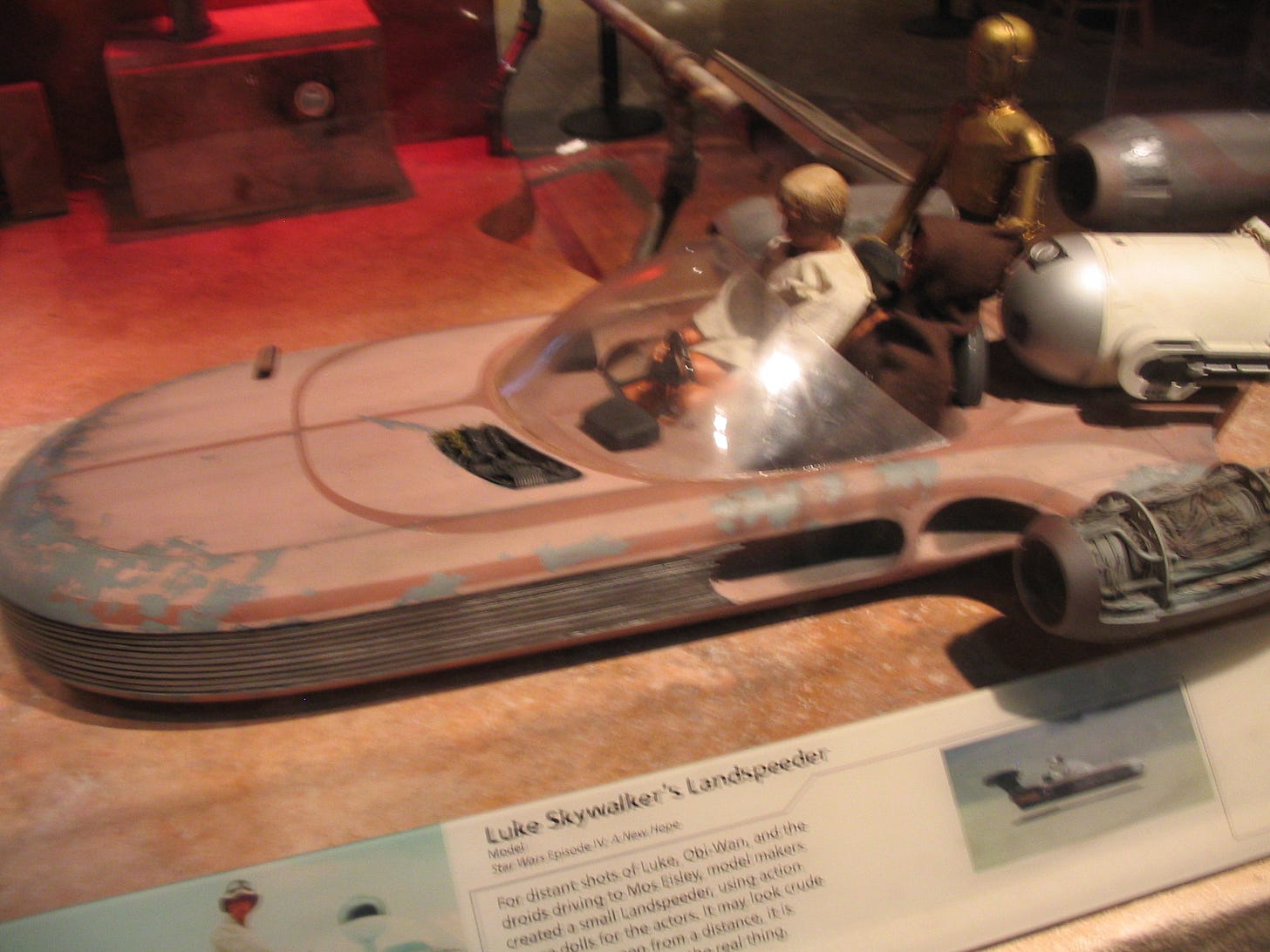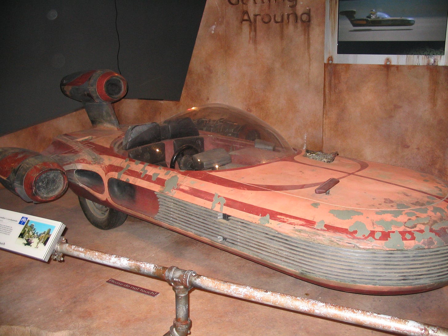 Several years ago, as a part of the traveling Star Wars Museum exhibit, I got to see not one but two different Landspeeders.