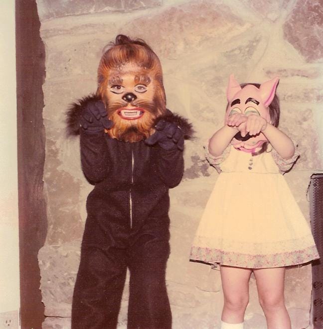 My biggest memory of Halloween in grade school was the “parade”. At some point in the day, all the students in our class put on our masks, lined up in single file, and visited all the other classrooms. Our school was relatively small — there were two sixth grade classrooms, two fifth grade rooms, and so on. We visited each room and stood side by side in front of the chalkboard for all the kids to see. After our parade ended, every other classroom did the same and walked through every classroom, including ours. Suffice it to say, we didn’t get a lot of schoolwork done that day.