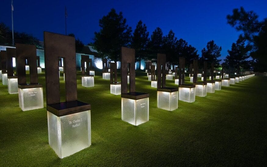 Instead, here in Oklahoma City, we have the Bombing Memorial, which was built where the Alfred P. Murrah building once stood.