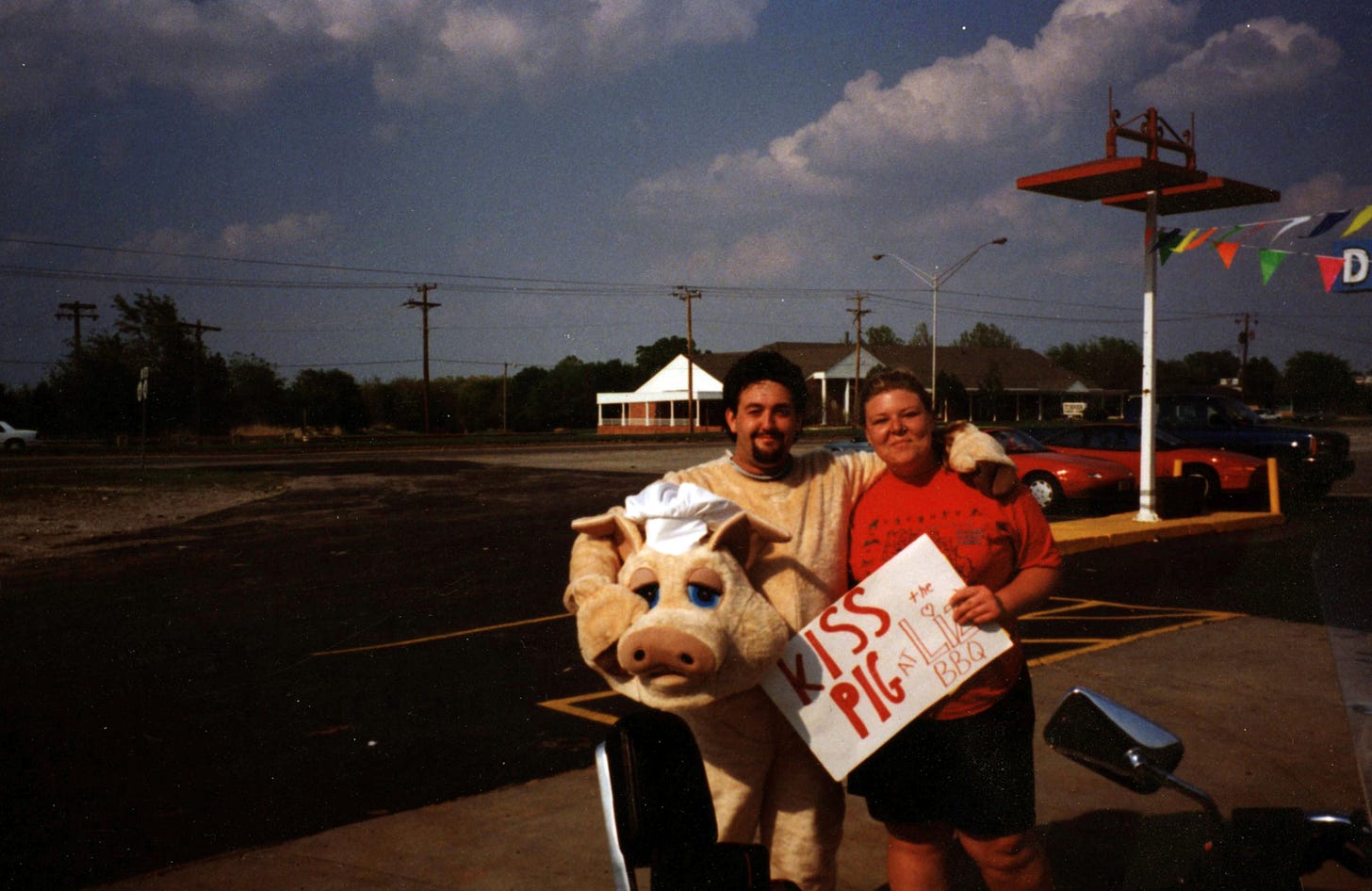 I graduated from high school in 1991. Over the next four years I attended two different colleges, earned zero degrees, worked at three different Pizza Inns, three different Pizza Huts, Heavenly Pizza, and Long John Silver’s. I even spent a summer working at my future mother-in-law’s BBQ restaurant where “other duties as assigned” included wearing a rented pig costume and waving a “Kiss the Pig” sign at passing motorists.