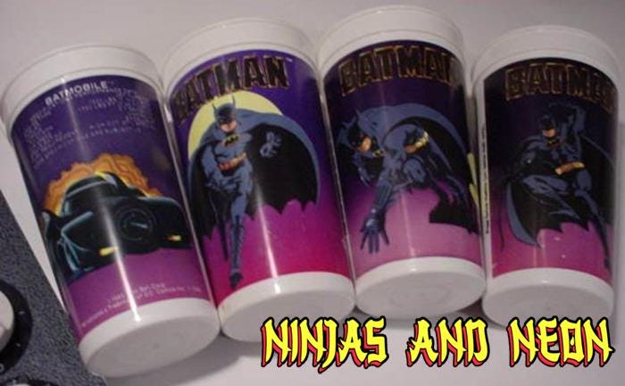 With each successive Batman film, the public lost a little more interest and collectibles were a little less desirable. I don’t remember people being quite so excited by the time Val Kilmer or George Clooney had taken their spot behind the cowl, but in the summer of 1989, cars lined up around Taco Bell to grab a fourth meal complete with a 32oz drink in a Batman cup.